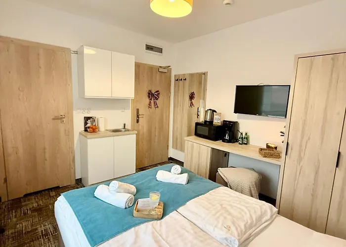 Dieses Apartment bietet Ihnen eine Küchenzeile mit einem Wasserkocher und einem Kochfeld. Der Flughafen Stettin-Goleniow liegt weniger als 95 km von hier entfernt. Die Gäste können ihren Aufenthalt mit einem Jacuzzi und einer Sauna bereichern.